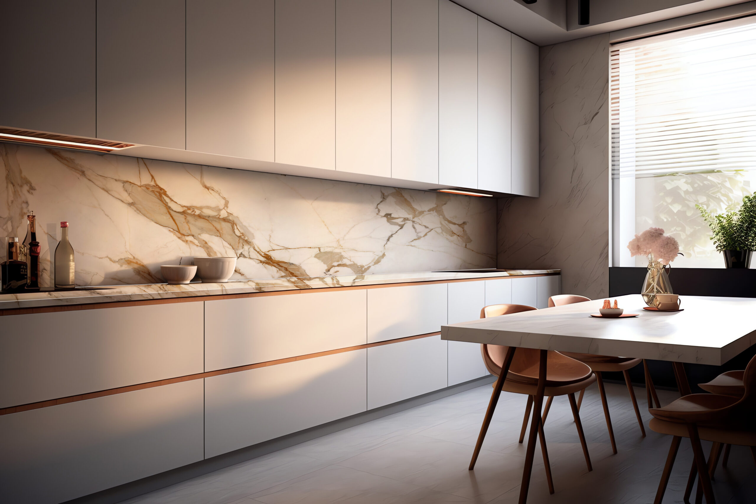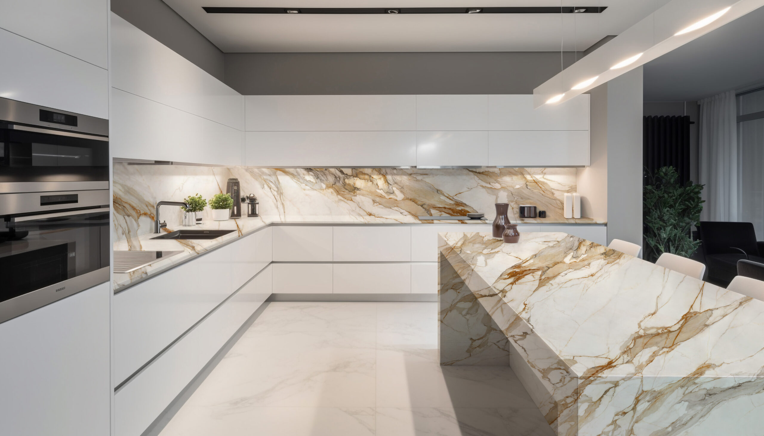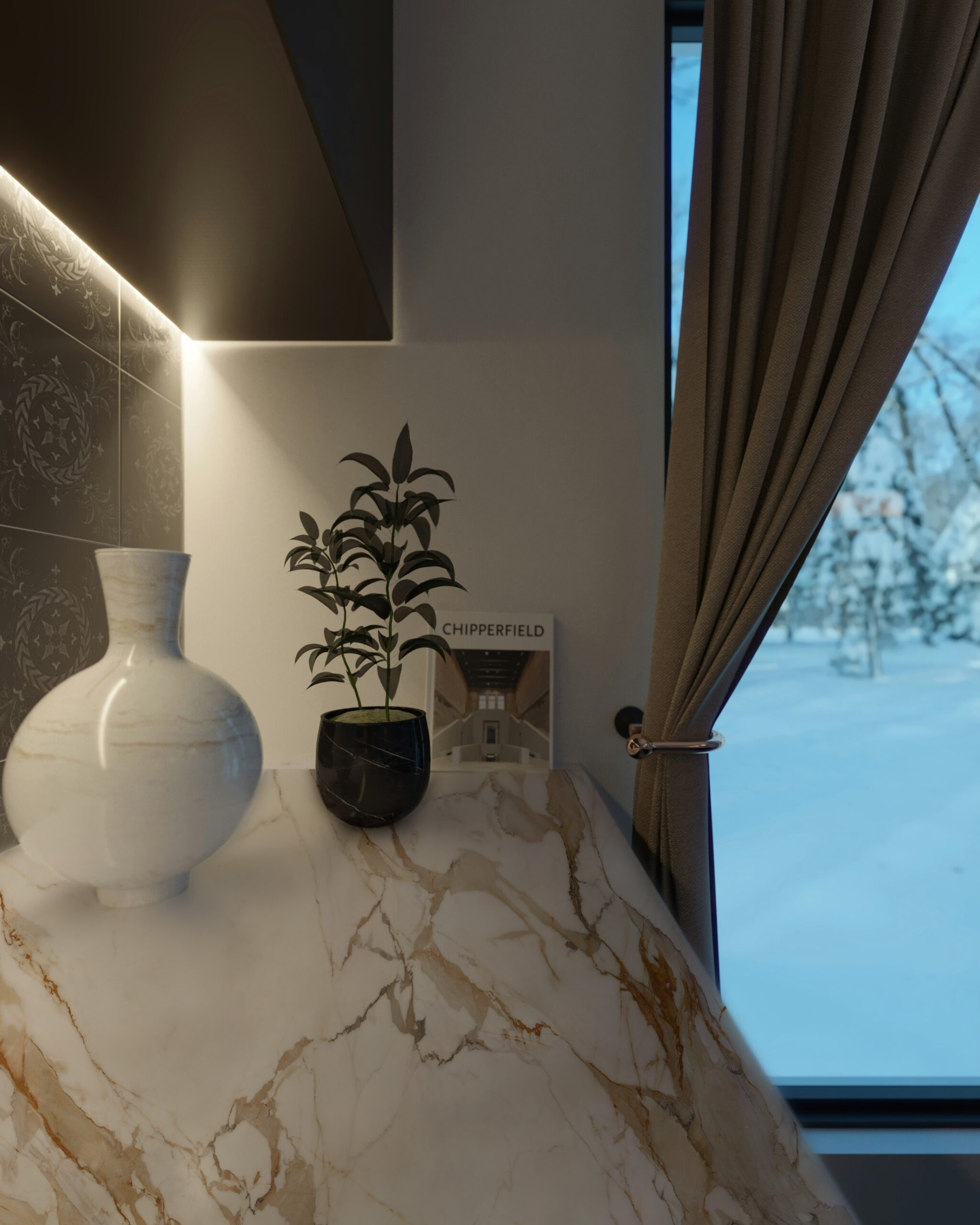 Elena Venosta embodies timeless elegance with a contemporary twist. Its off-white base sets the stage for a mesmerising display of bold, flowing marble veins. These veins, characterised by graceful movements, cascade across the surface in gradual shades of copper and greys, adding depth and dimension to any space.